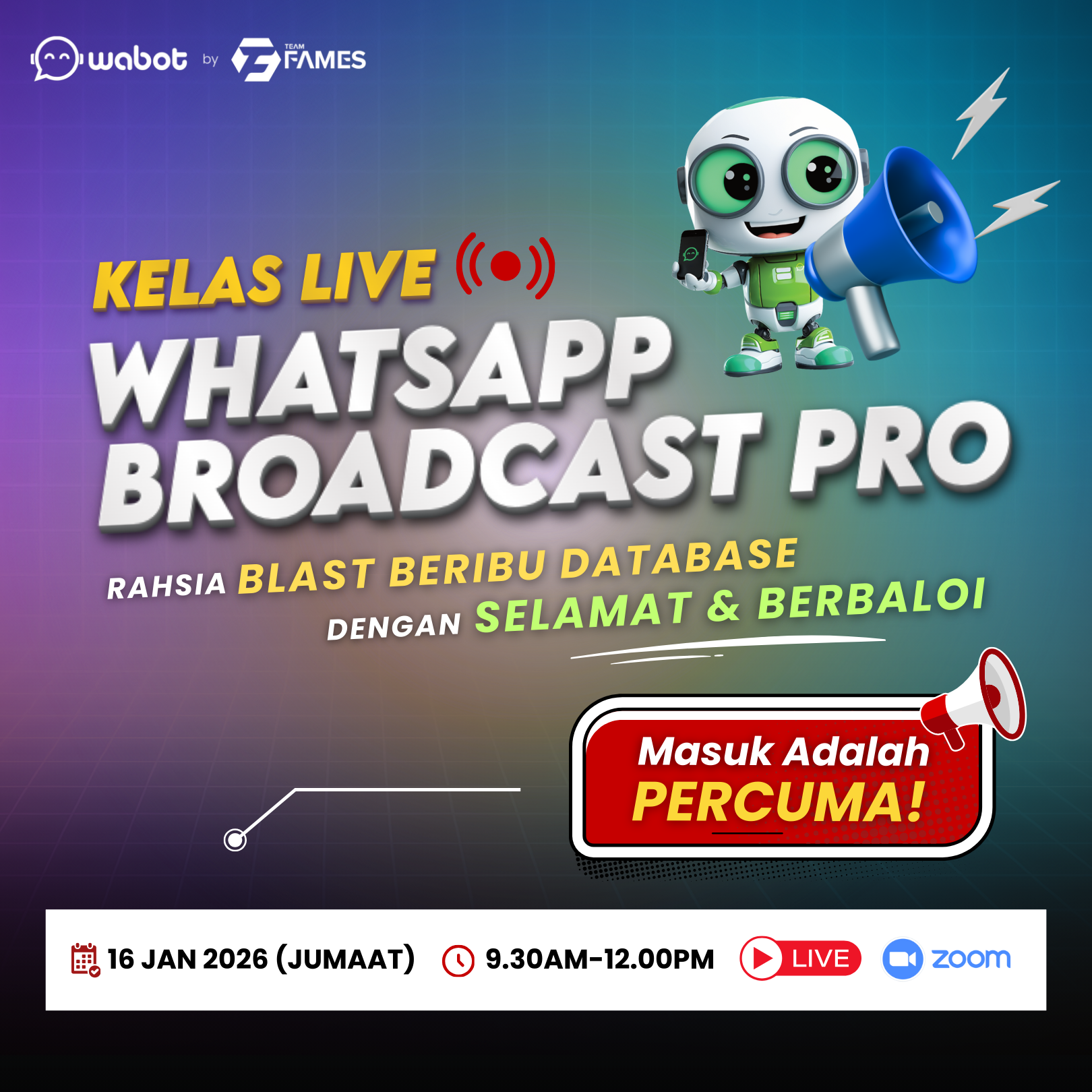 Personal Coaching 1-to-1 (Online atau Fizikal)Perlukan sesi bersemuka untuk belajar ilmu closing WhatsApp & tetapan teknikal Wabot? – Jom set masa untuk kita selesaikan segera dalam masa 3-5 jam.