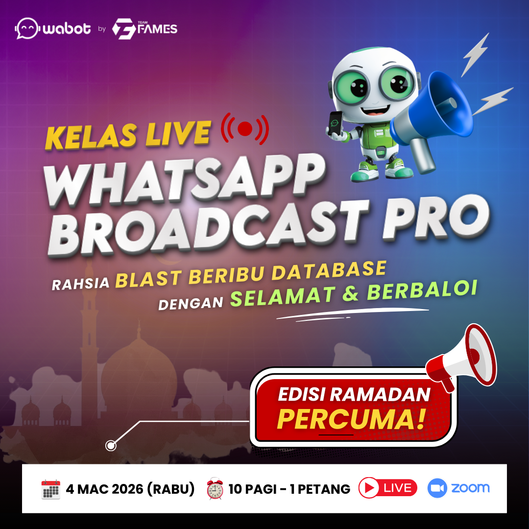 Promosi Ramadan: Diskaun 50% Wabot Pro + Akses Video Tutorial Lengkap Broadcast Official APIBelajar sendiri ikut kemampuan anda melalui panduan video tutorial lengkap Wabot Pro. Apa anda akan belajar?