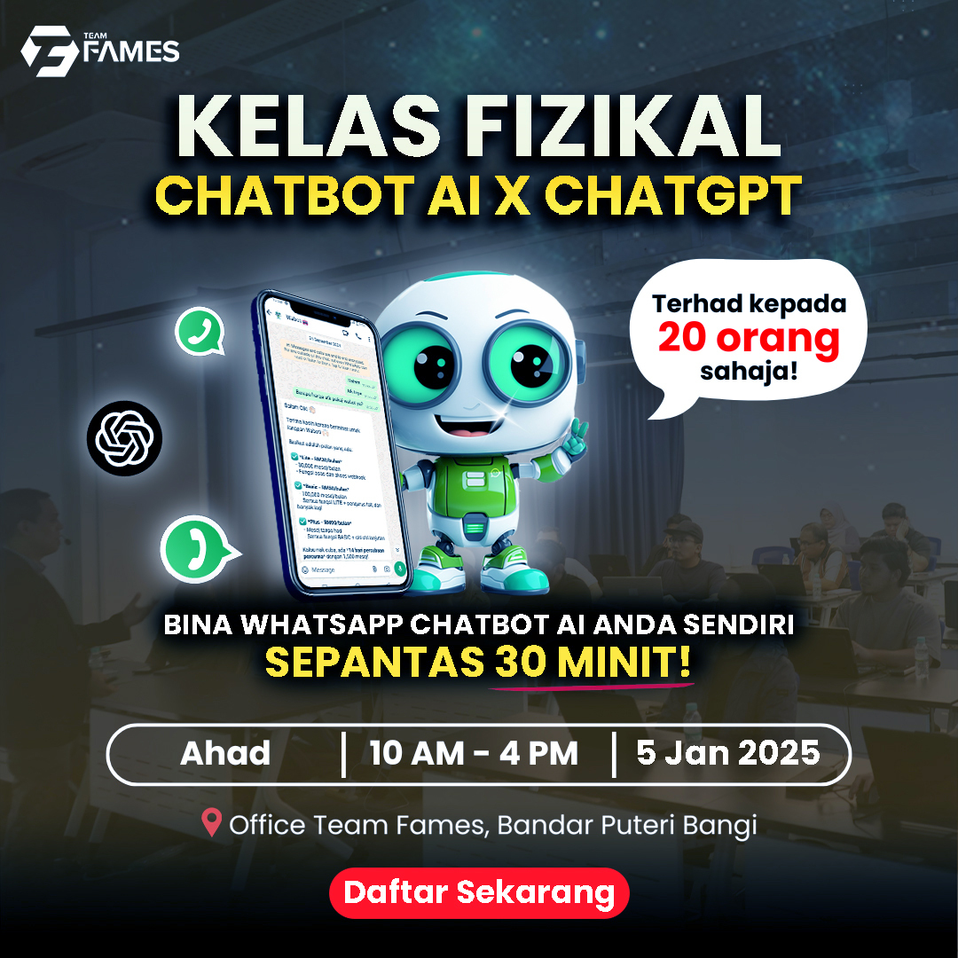 Tawaran eksklusif, Tn. Firdaus Azizi nak jemput anda ke Kelas Fizikal Whatsapp Chatbot Ai untuk belajar secara praktikal.